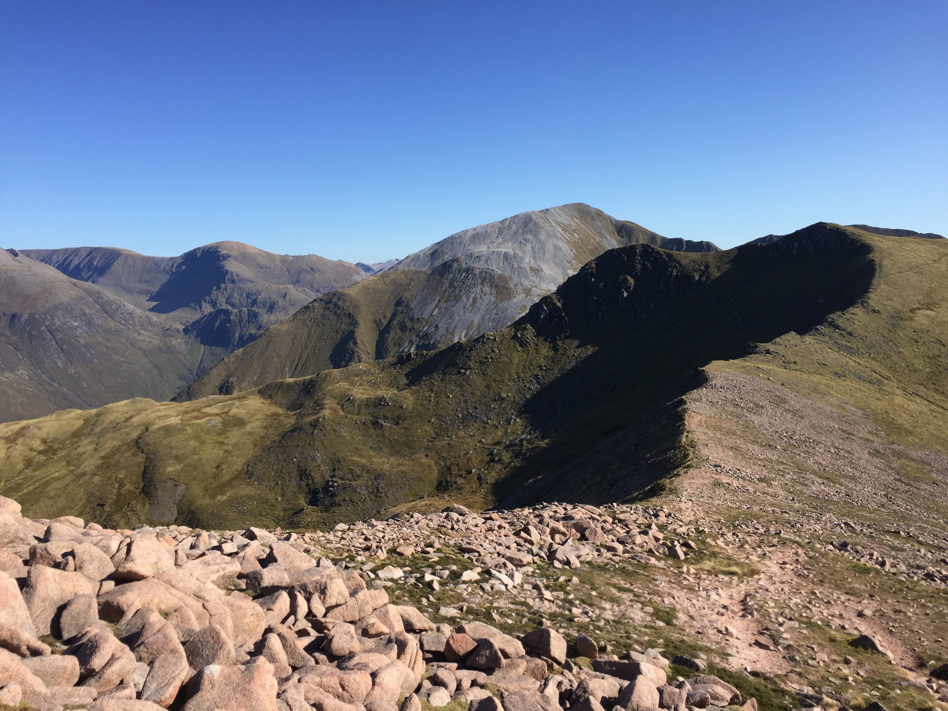 I haven’t been up a Munro in more than a year, so yesterday I went a wander up Stob Ban and Mullach nan Coirean in the Mamores. The weather was warm, but what you don’t see in the pictures is the 40-50mph wind.