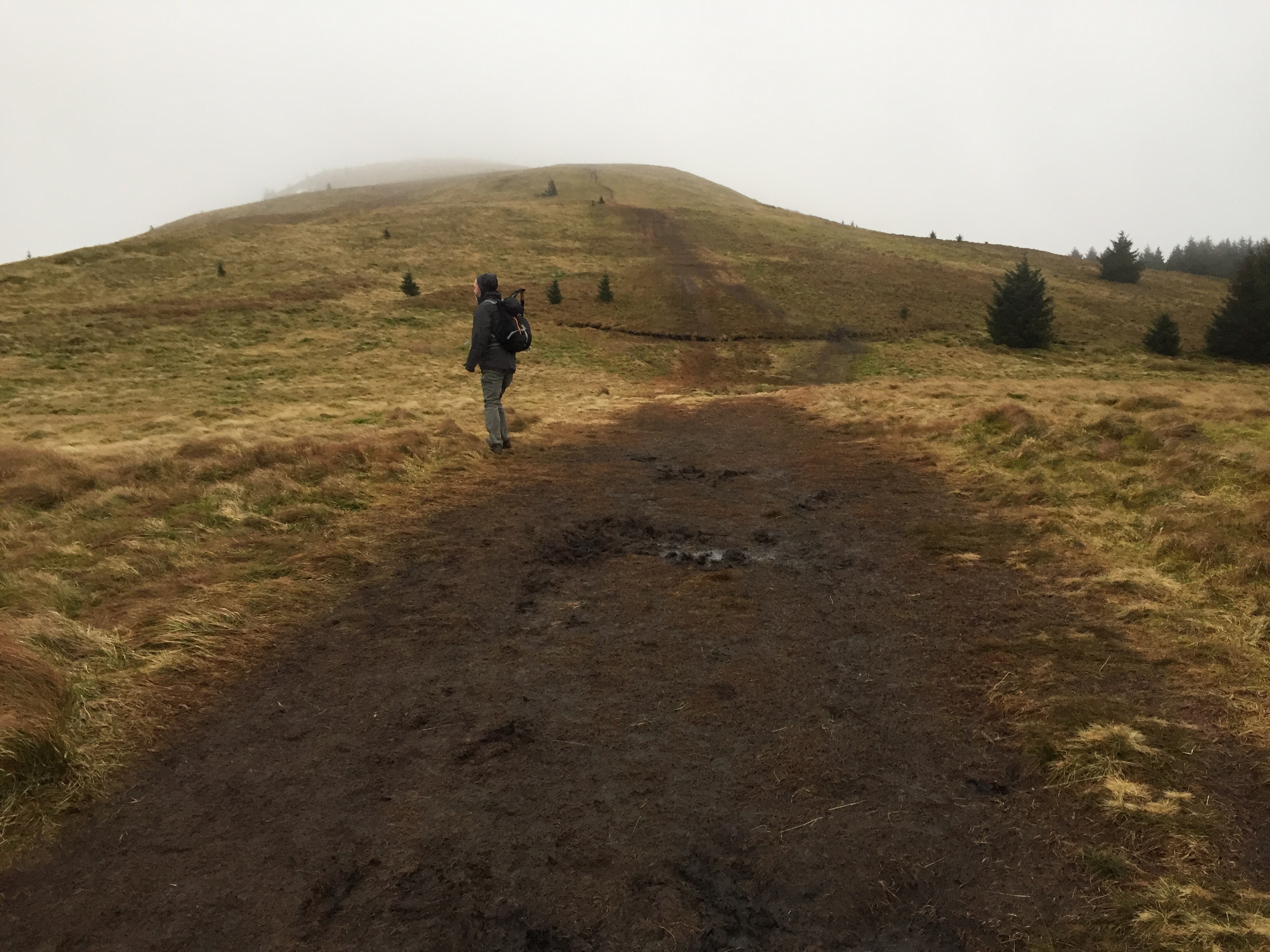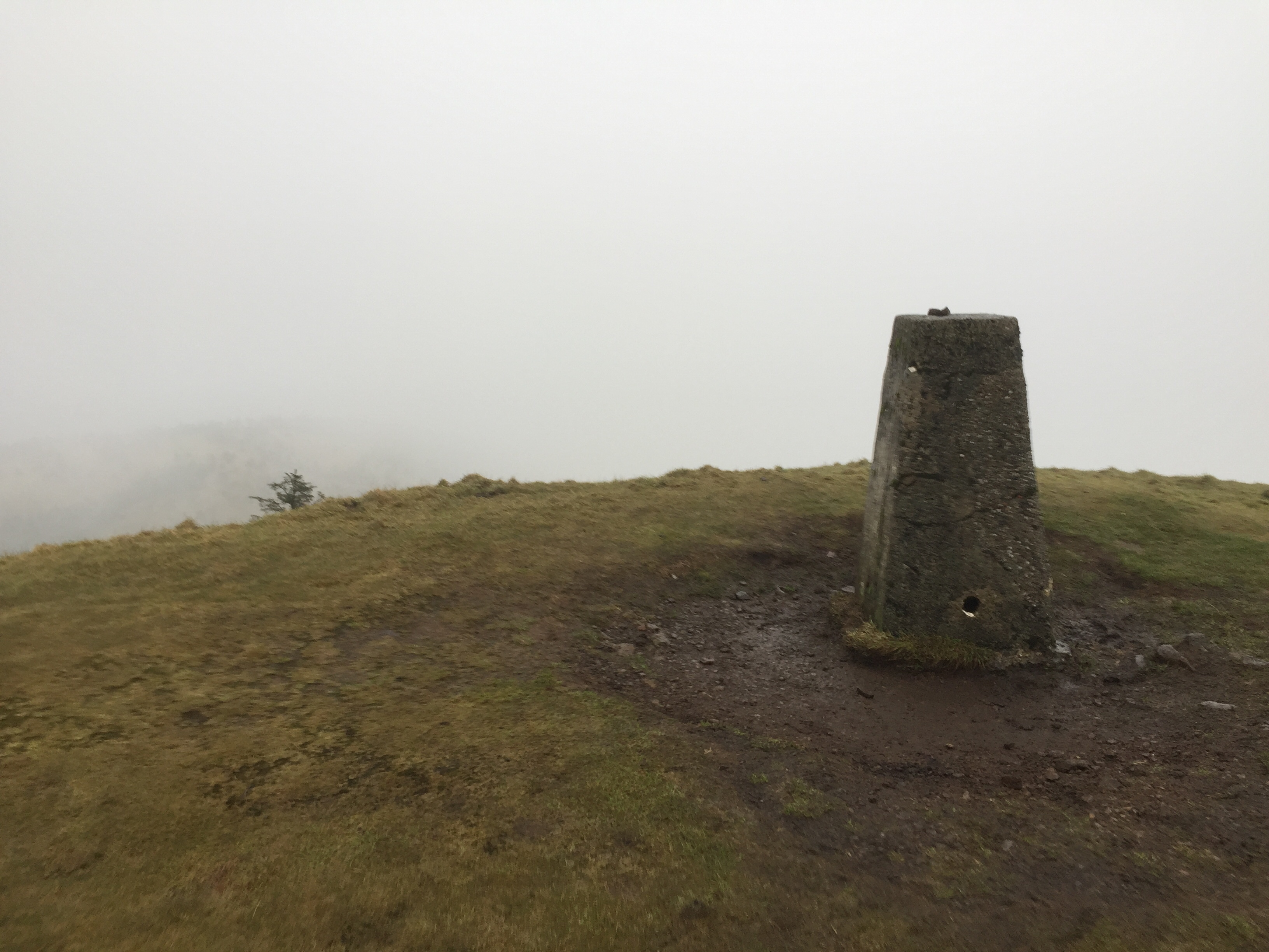 We were only a hundred metres or so from the top and with a little help from the wind reached the trig point. The views on a good day are supposed to brilliant, not so today.