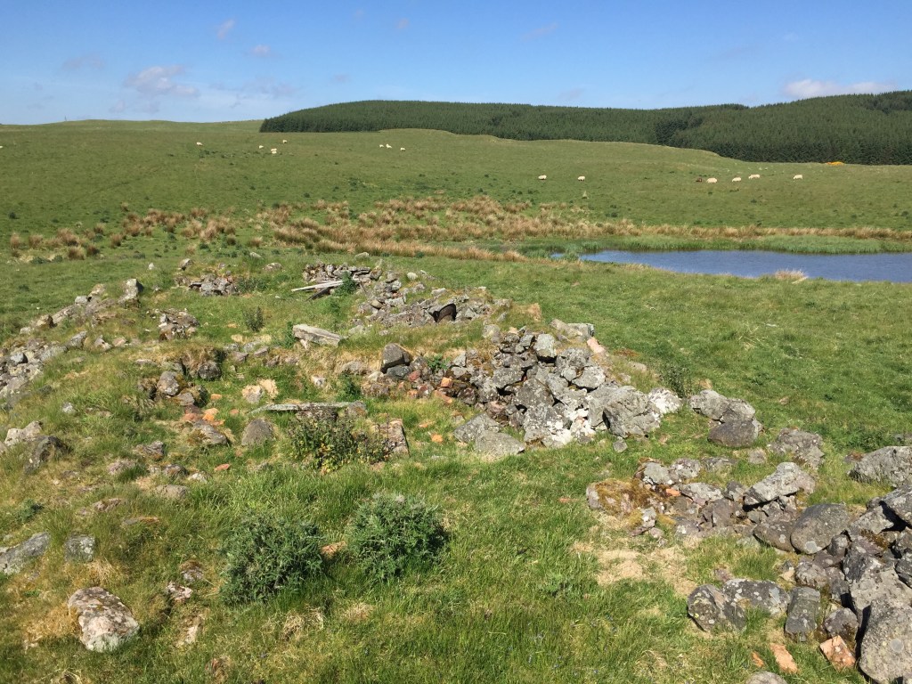 By the time I reached the top, I was feeling the heat but it was a gorgeous day and I decided on a start point for my grid square saunter. I wasn’t going to just start on the grid square, I needed to navigate to it too. So on the map further east of my square you’ll see an old ruin marked West Dron Hill Farm. That would be where I started.