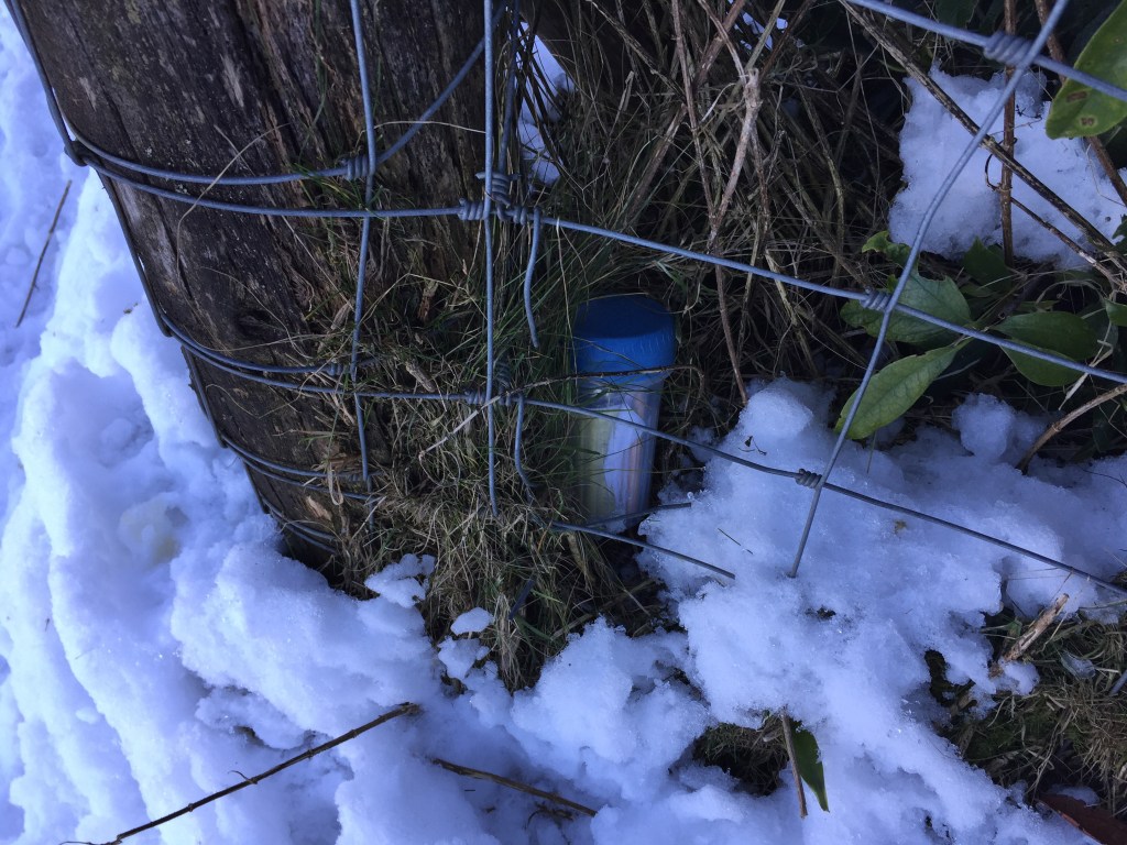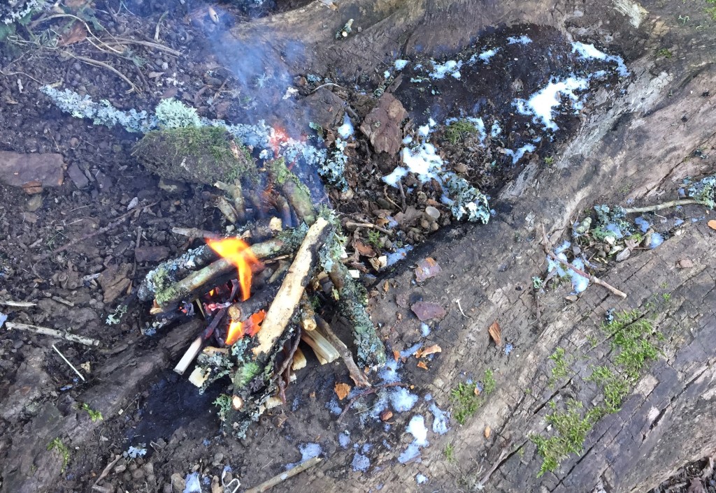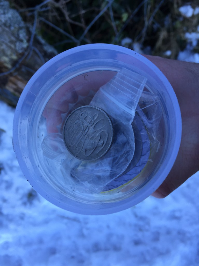 After lingering in the cold at the summit and marvelling at the fort and sliding most of the way down, my hands were like ice blocks. So I built a wee fire, created a cheese and tomato masterpiece and checked out the geocaching app again to find another treasure nearby. Turns out there are a few around the Law.
