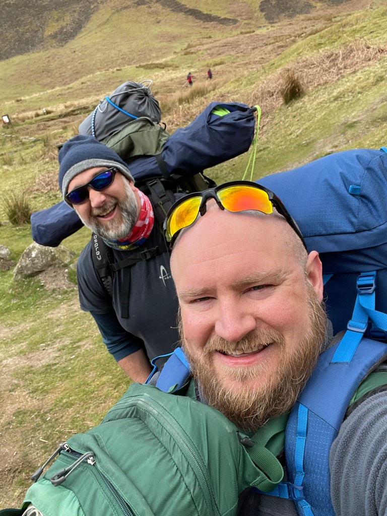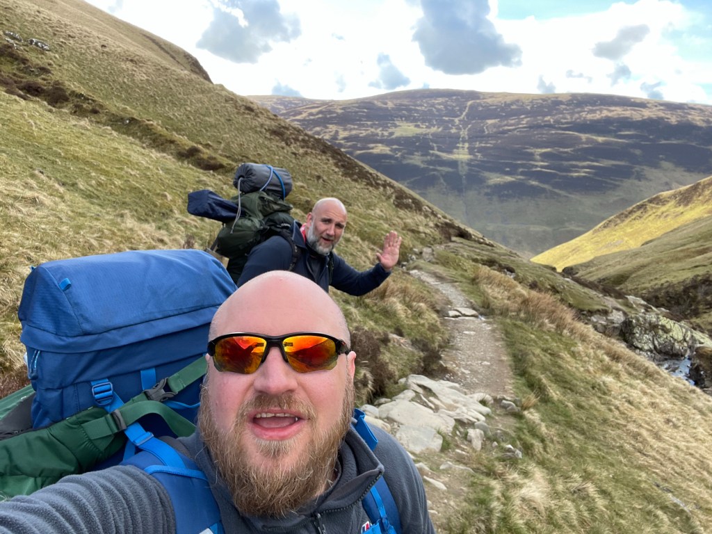 Our packs laden with food and wood, our mood and spirits were high as we climbed the initially steep path past the numerous waterfalls and up towards Loch Skeen, our final destination for the night.