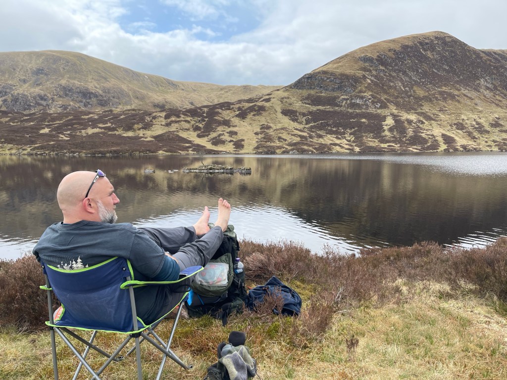 After a sedate couple of hours and a gradually reducing gradient we reached the loch that would be our bed buddy for the night. We set up our tents and settled for a cuppa and to check out the surroundings.