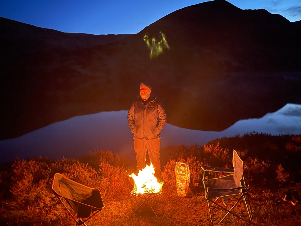 There are no trees around the loch. Just two small trees on a couple of little islands. And with the temperature forecast to be freezing, we’d come up with a whole trees worth of wood. We were glad of the warmth the fire gave us as the night went on.