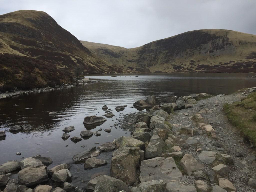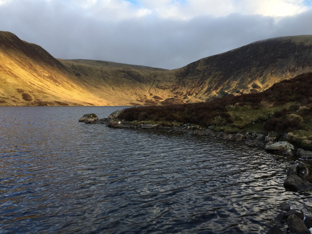 The Loch Skeen sun was replaced for a while by the Loch Skeen snow, although nothing could take away the beauty of our resting spot. I went on an explore and headed uphill from the waters edge.