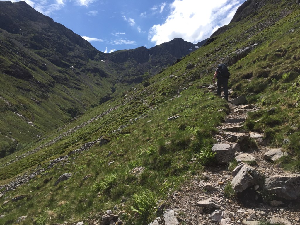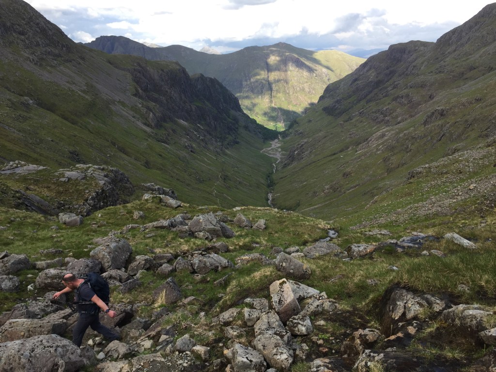 With no real plan other than to explore, we headed up the path that leads to the Bealach Dearg, the pass between the two Munro’s, Bidean and Stob Coire Sgreamhach.