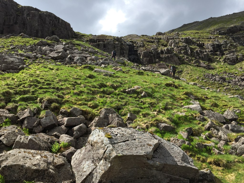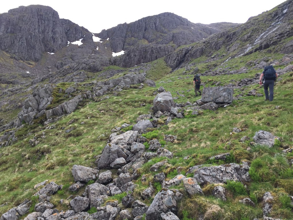 The good path headed east and then quickly turned south into the gorge at the bottom of the corrie and then steeply up into the corrie itself.