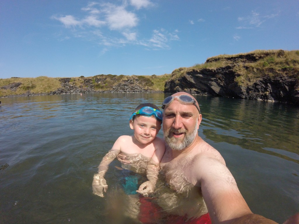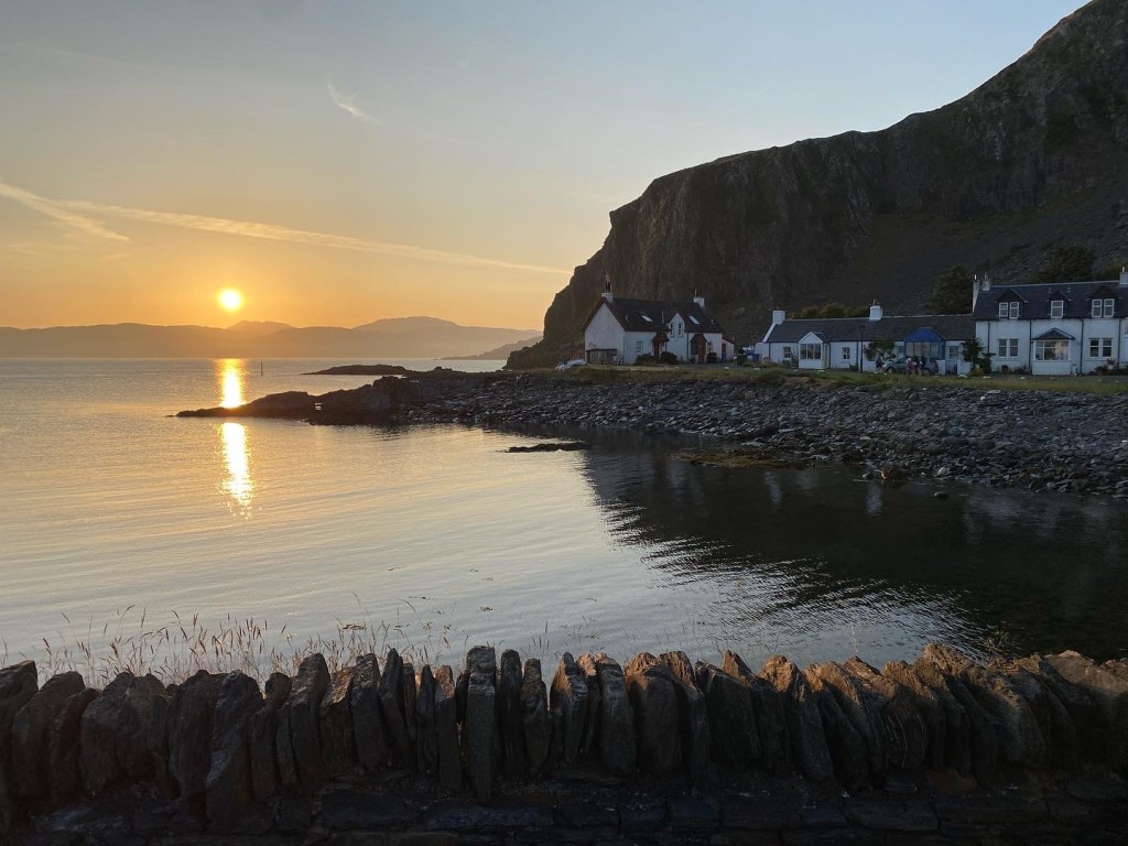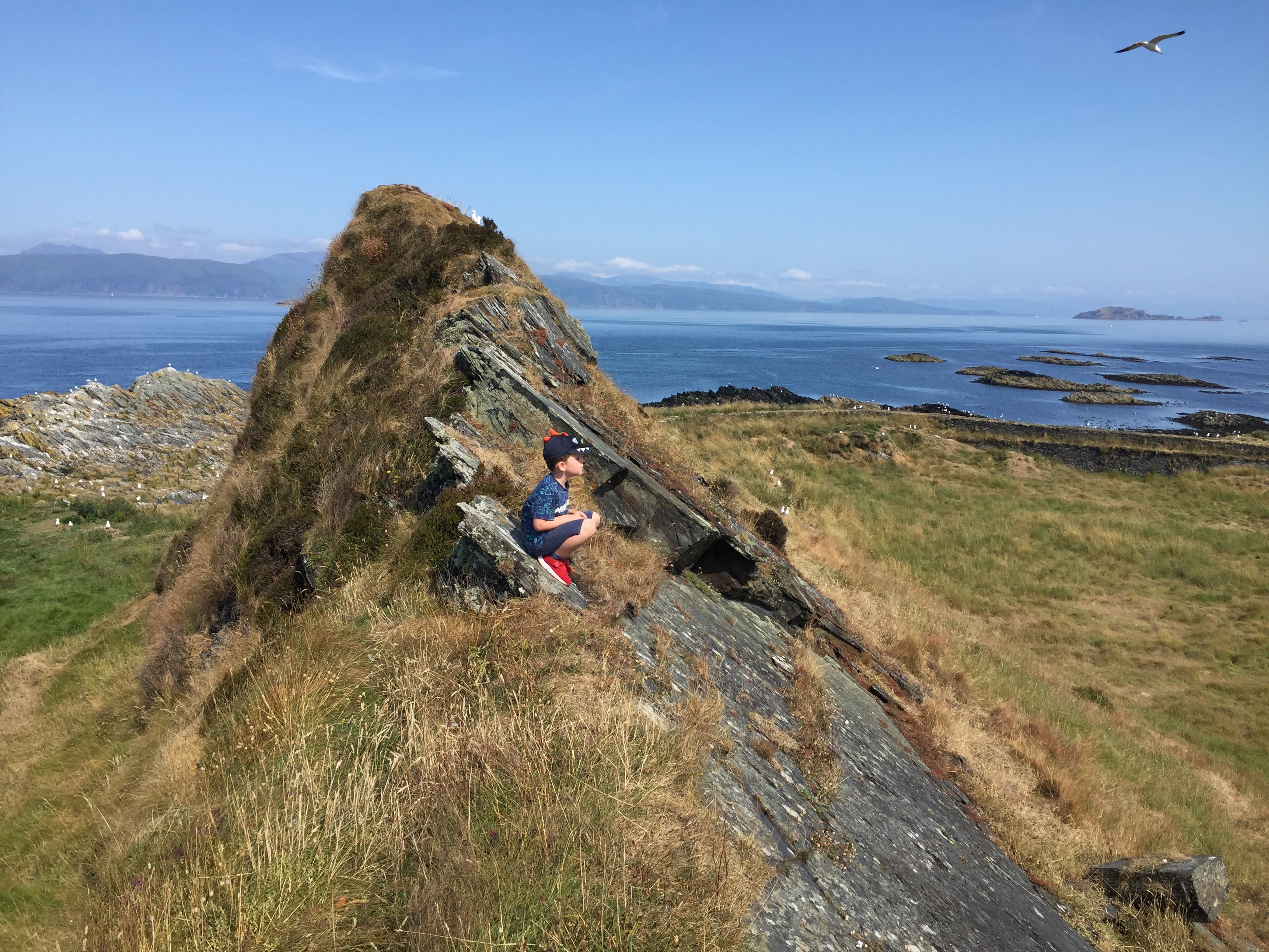 After a last walk around some of the old buildings and another swim, this time in the sea, waiting for the boat to come back, we took our last selfie and headed back across the water into 21st century Ellenabeich. We booked into the Aire/Airidh, walked up the hills behind the village and ate fish and chips and ice cream, enjoying the sunset and talking about the day we had just enjoyed.