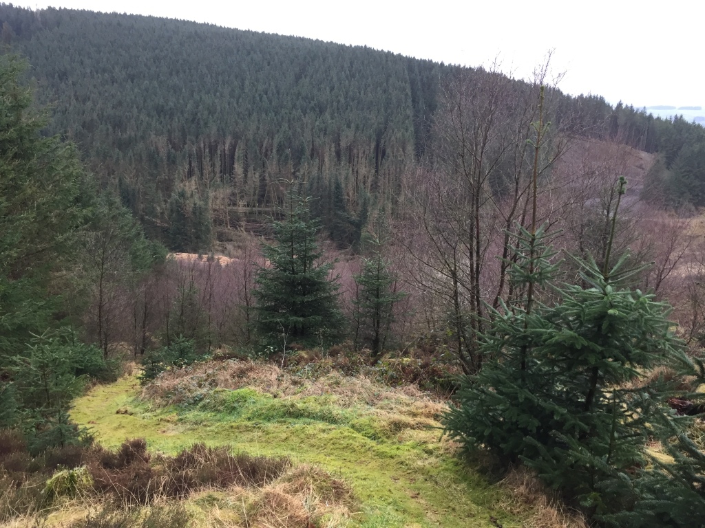 The hills were covered in plantations and areas of storm damage.