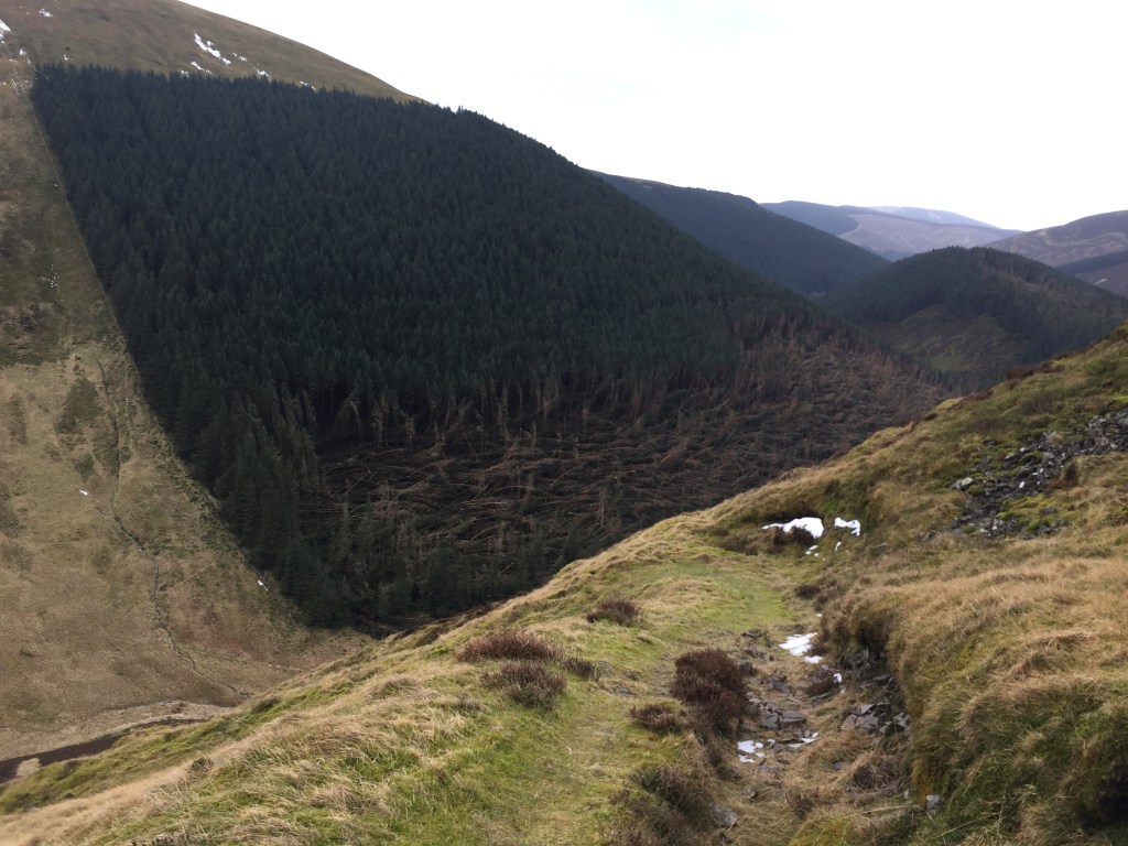 After lunch, we continued down the hill towards the scar, with more storm damage to be seen to our right.
