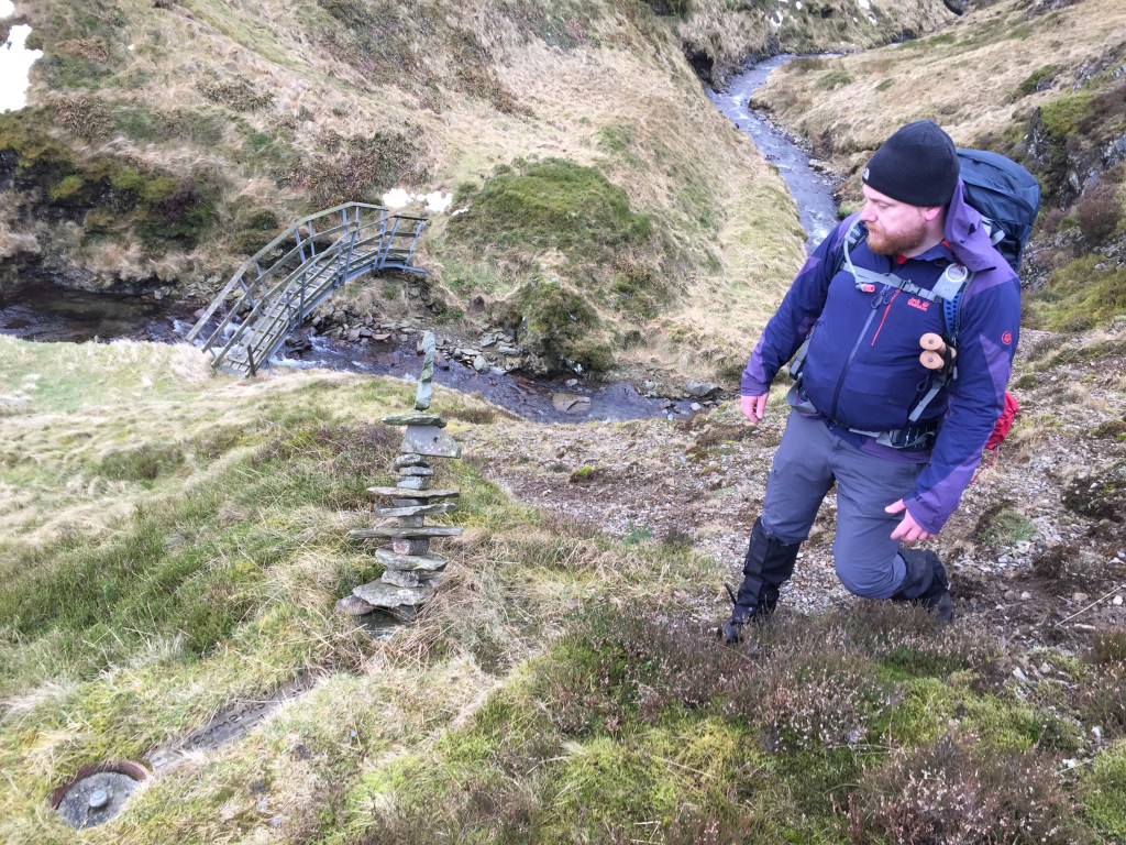 The zig zag path made the downhill much less of a chore and the scar looked even more impressive as we reached the floor of the glen.