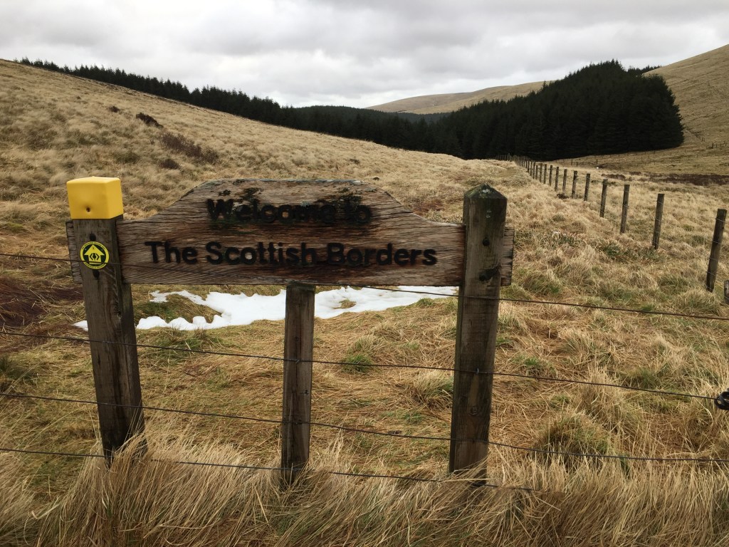 Onward and upward we climbed to Ettrick Head and as we reached this watershed, we did indeed see the rivers, which until that point had all been heading west, start heading east. We left Dumfries and Galloway and crossed into the Scottish Borders , my home region and into the Ettrick valley, the valley my grandparents had lived in.