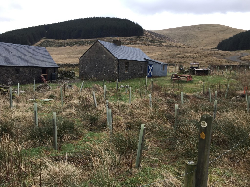 It was dull but dry when I parked up on the side of the road near Capplegill at about 9.15am. just as I was finishing my packing, a taxi pulled up and in I got to find Mr C and Emma the taxi driver discussing the possibility of Emma picking us up from the bothy later or even dropping off a takeaway. (Both ideas were ridiculous of course, unless she had a helicopter.)