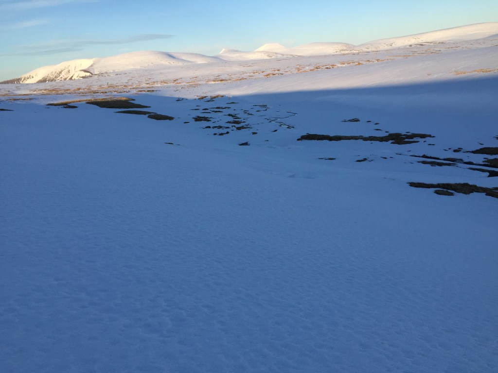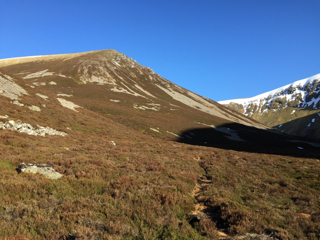 Deciding on the latter, we followed the fast flowing burn up out of Coire Garbhlach and then climbed up the steep side of Fionnar Choire onto the plateau.