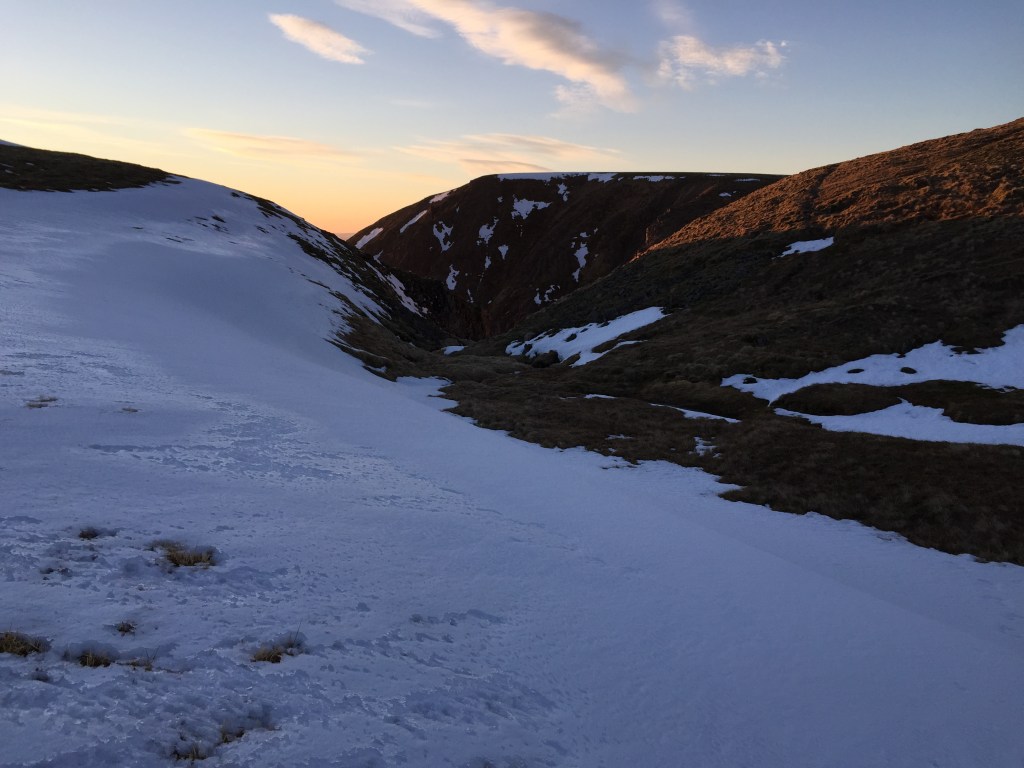 The walk around the rim of Coire Garbhlach was a fantastic end to a glorious day. We’d expected to be down and off the hill long before tea time, but this unexpected lateness (or poor prep!) gave us the finest mountain sunset I’ve seen in a long time.