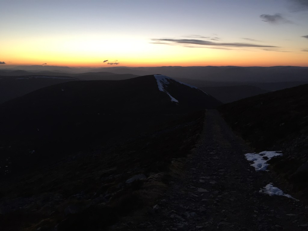 Darkness fell and we reached the top of the road down towards Glen Feshie just in time. The walk down was quiet as we were all shattered from our days efforts. But the glow of the sunset reflected the glow in our minds from the amazing day we had just experienced.