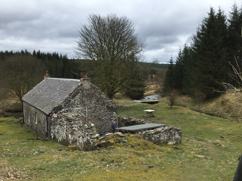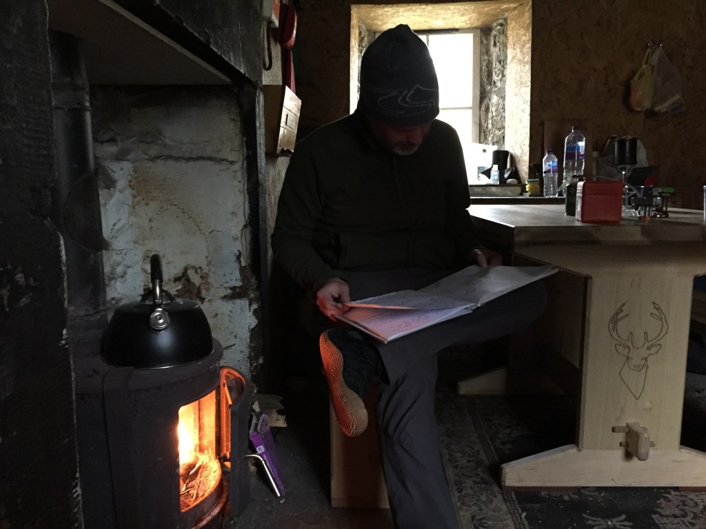 The wood and extra food/water we were carrying were starting to take it’s toll on our backs and shoulders and we were pretty excited to catch site of the Dryfehead bothy roof as we closed in.