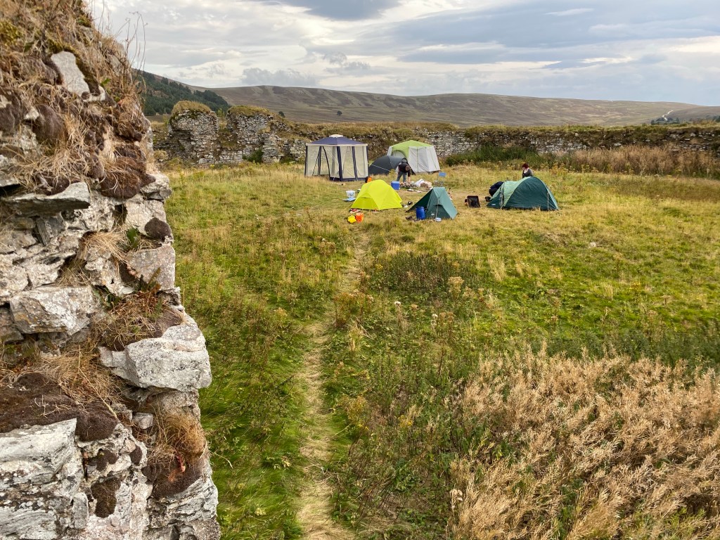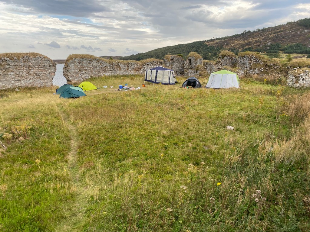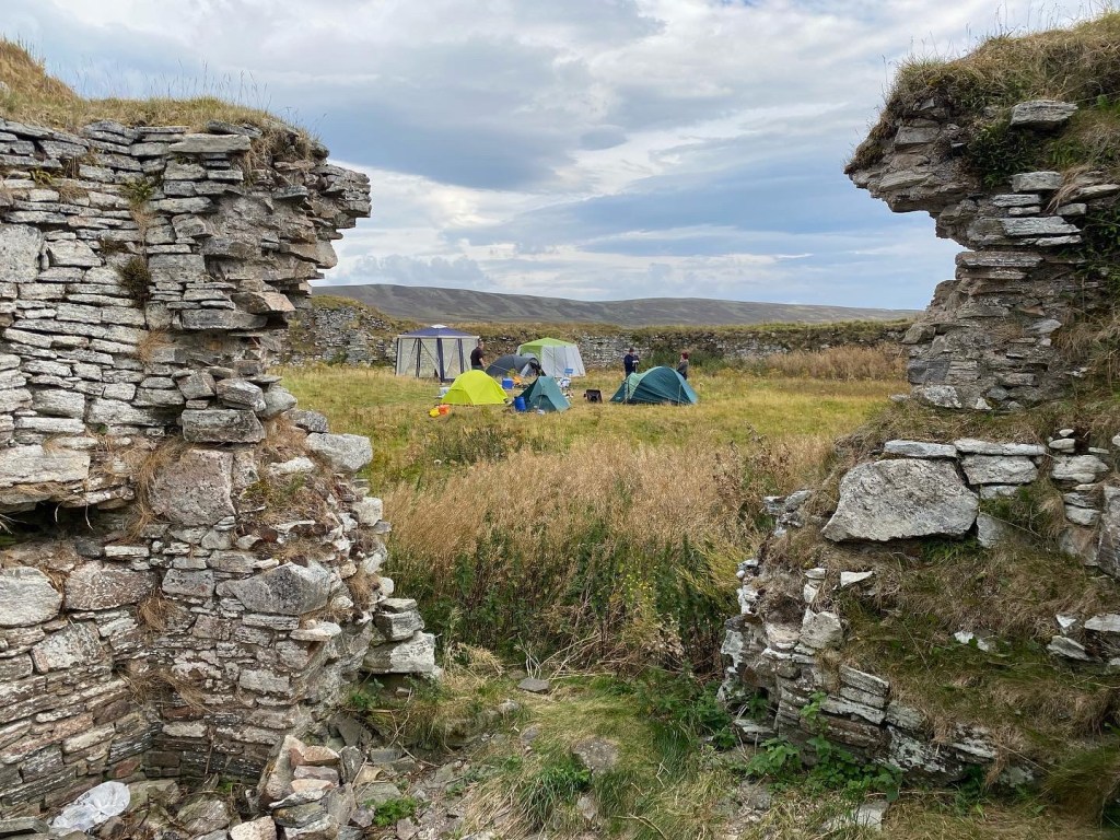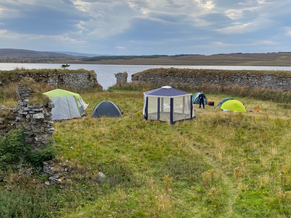 Already in situ were three tents and a gazebo. After some chat with our fellow islanders, we set up our own camp near the centre of the ruins, not far from the blackened fire pit.