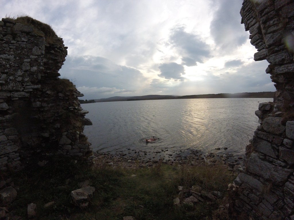 Talking excitedly, we had made our way north to Lochindorb with the intention of camping in the ruins of the castle of the same name, which sits on an island about 400m from the shore road. We planned on using an inflatable kayak to transport our gear across the loch. With me paddling and Dave swimming, we knew we’d still need probably two trips to get our tents, wood etc onto the dry land of the island. The sun shone as we packed the boat and got ready to cross the water.