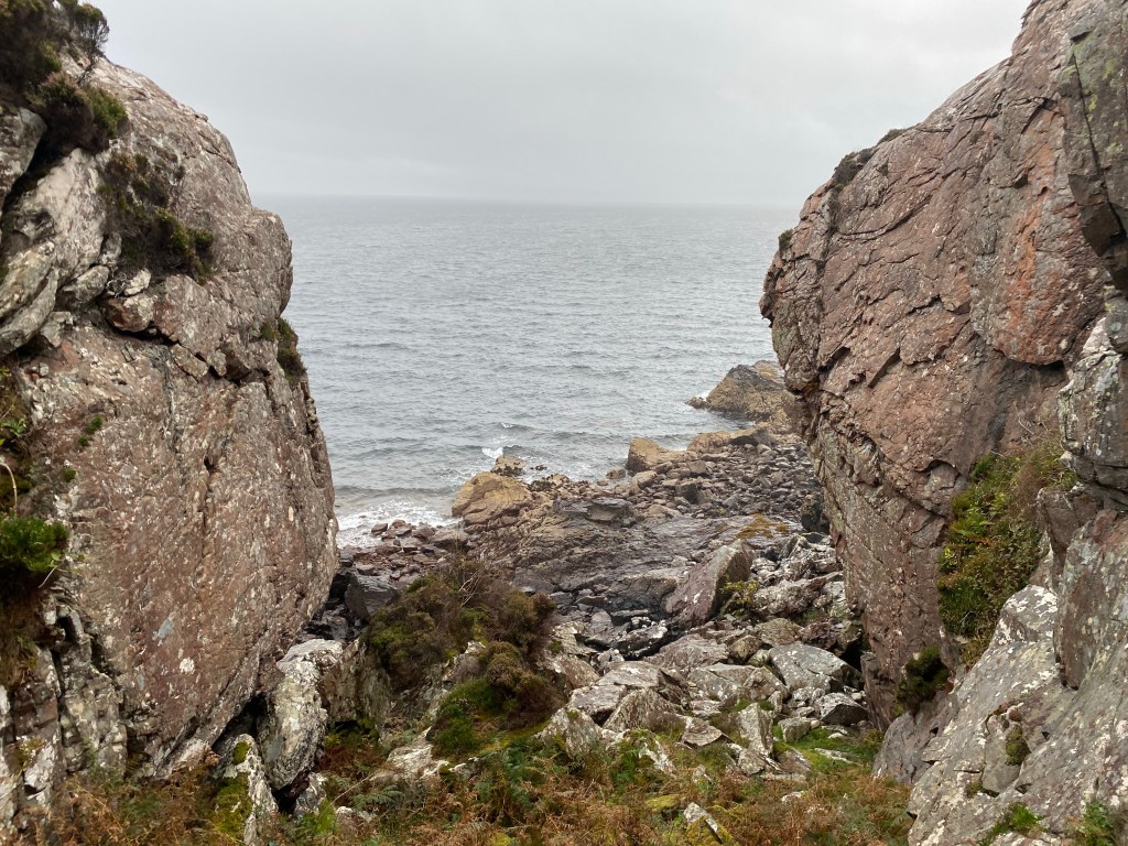 The criss cross of deer paths across the bog was fascinating and useful. Paul and I used the paths while marvelling at the deers ability to move so quickly across this style of terrain. We moved over towards the top of the cliffs at the seas edge and decided to head back towards the bothy and search out some sea caves. We quickly found some places where we could safely get down to the waters edge.