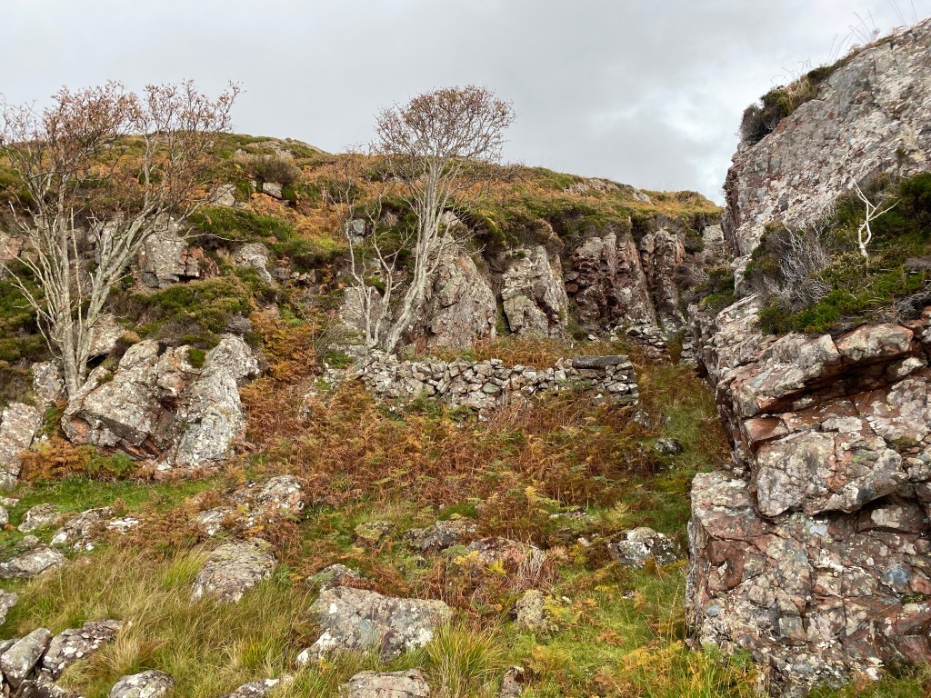 Earlier we had found evidence of the crofters using the natural landscape to create shielings or pens for their sheep by using cliff or rock edges as part of the wall. Here’s another example.