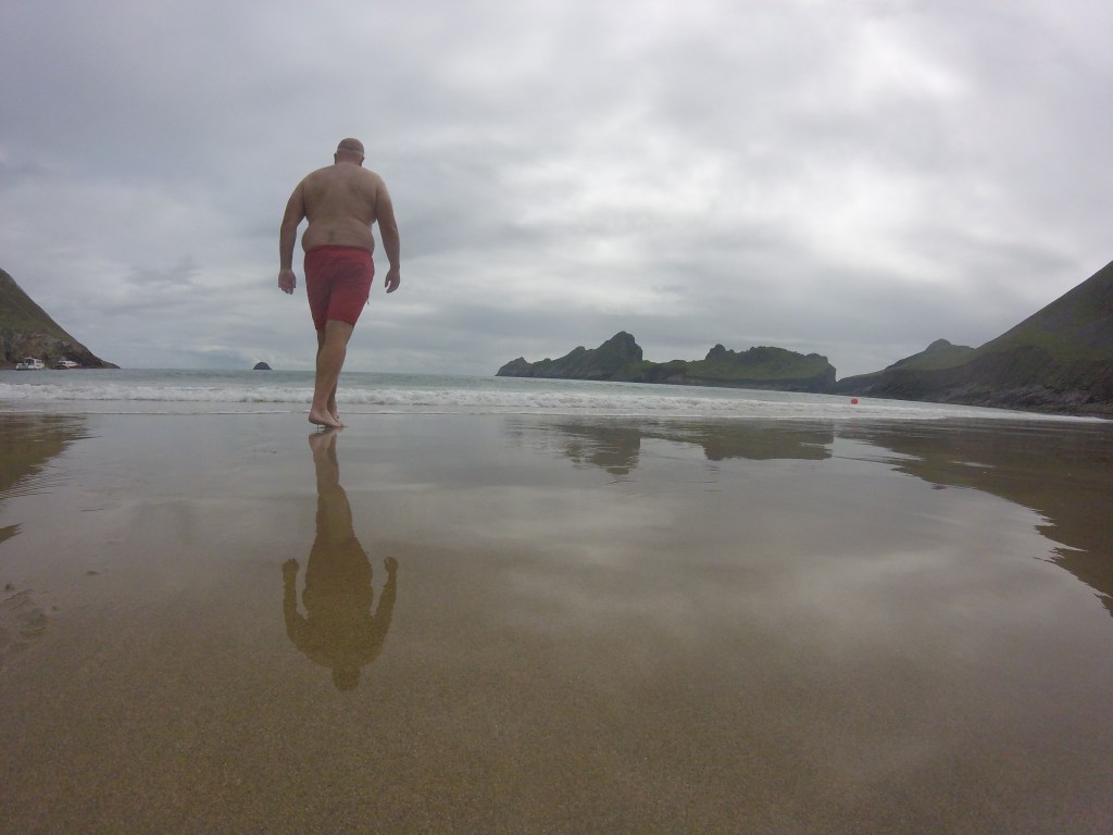 Swimming in the bay in the sunshine was just what was needed. Cooled and refreshed, Dave and I walked to the WW2 gun emplacement and looked over towards Dun, wishing I had time to get across and back before the boat left. If you look below you can see WW2 arms…. and Dave’s arms.