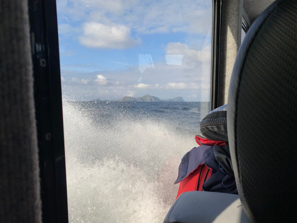 Our time was up. The fastest 4 hours ever had been and gone and we got back on the boat. A quick tour of Dun with its pinnacles and puffins and then we turned and sped off in the direction of Levenish. And then homeward.