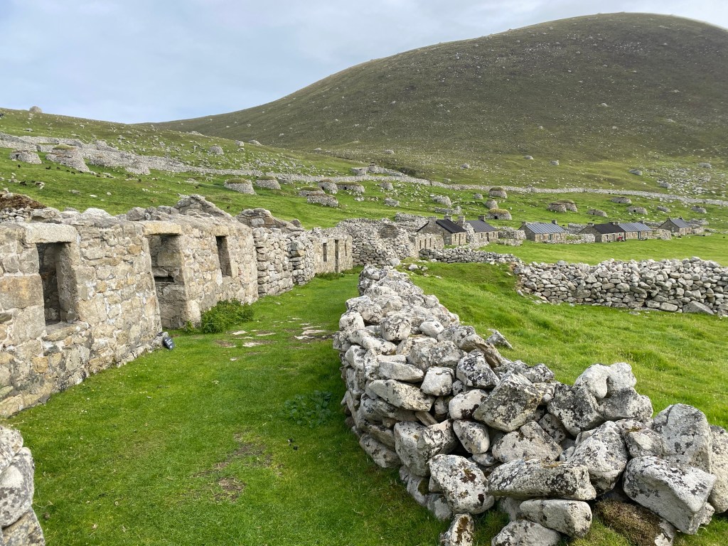 I lingered a while with my sandwiches, watching and listening to the fulmars and looking over to Boreray and it’s stacs. Literally one of the best mountain views I’ve ever witnessed. I wandered back down “Cleit Street” towards Main Street, admiring the cleit construction techniques as I went.