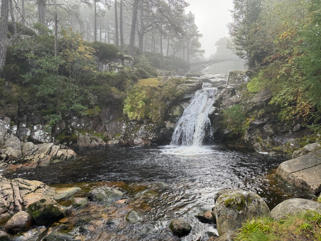 As I crossed the bridge I was surrounded by pine trees and a few birch here or there. The forest road meant good progress was made towards my first stop, the Falls of Garbh Allt.