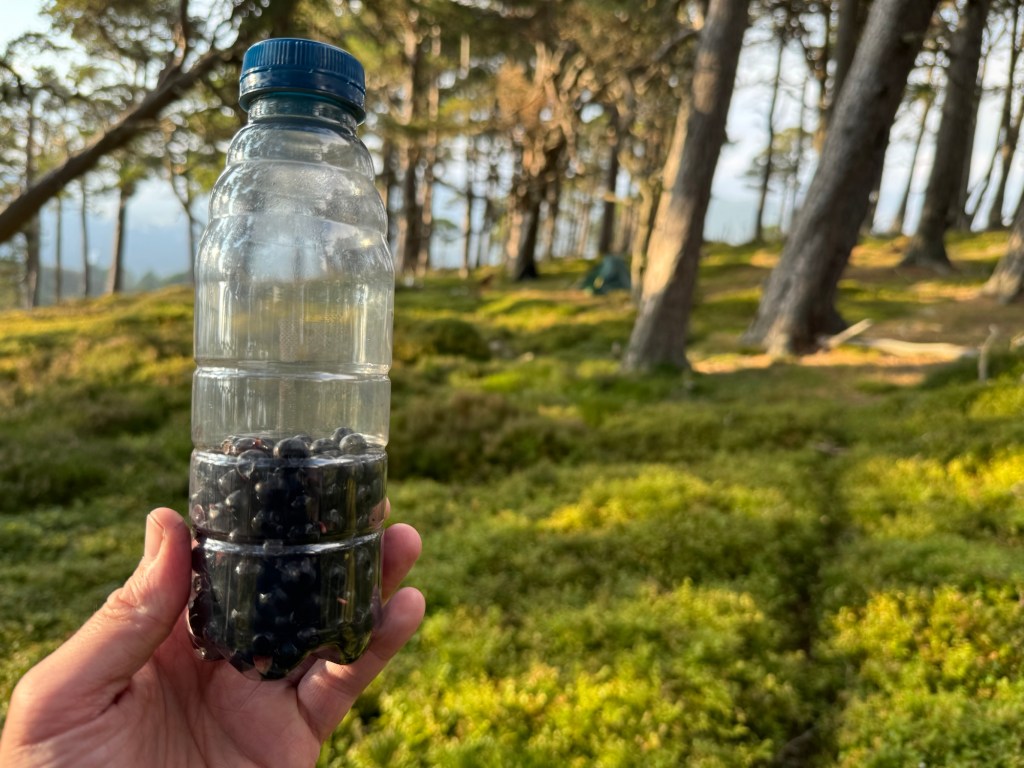 I’d foraged a few blueberries on my way uphill so added them to my pork pies. I opened the pie up and forced some berries in between the pastry and the meat. Officially my new favourite snack. Shame the season is almost over.